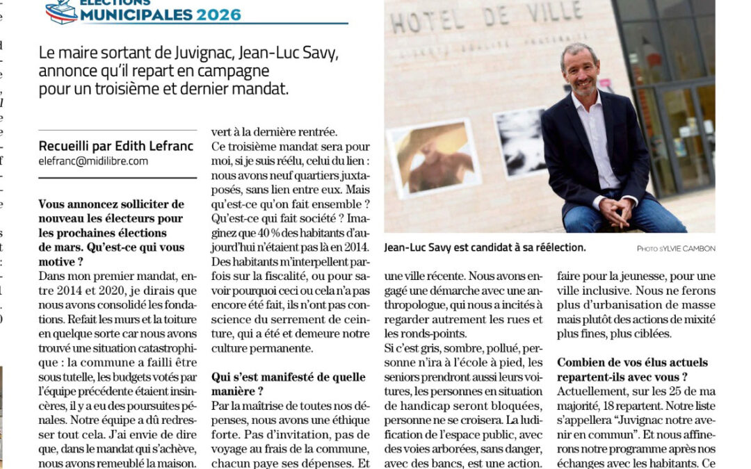 Juvignac 2026 : Jean-Luc Savy est candidat a sa réélection.